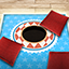 Swipe up to toss bean bags into the hole.